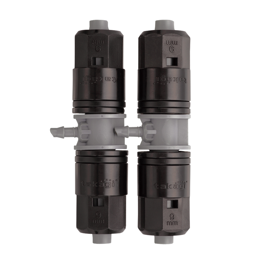 9mmジョイント4mm分岐は、9mmホースから4mmホースへ分岐するのに使います。
