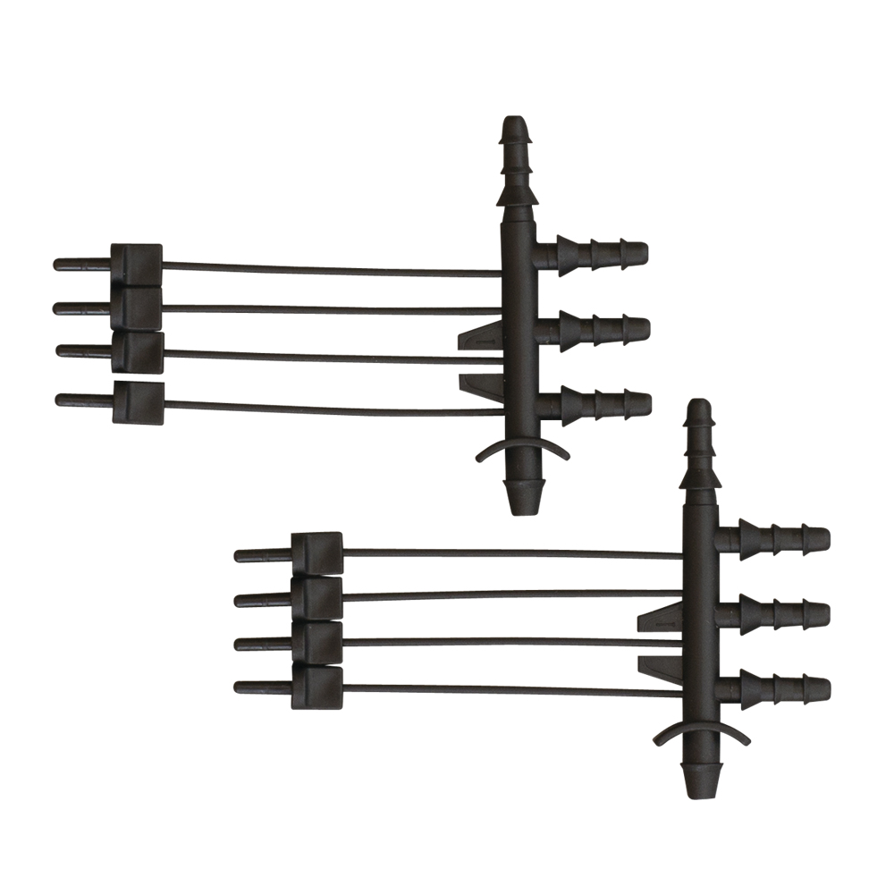 4mmジョイント4分岐にポットスプリンクラー点滴が接続されている状態